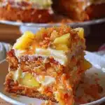 A delightful Hawaiian carrot pineapple cake that evokes comfort and joy, featuring moist carrots and crushed pineapple wrapped in a creamy frosting.