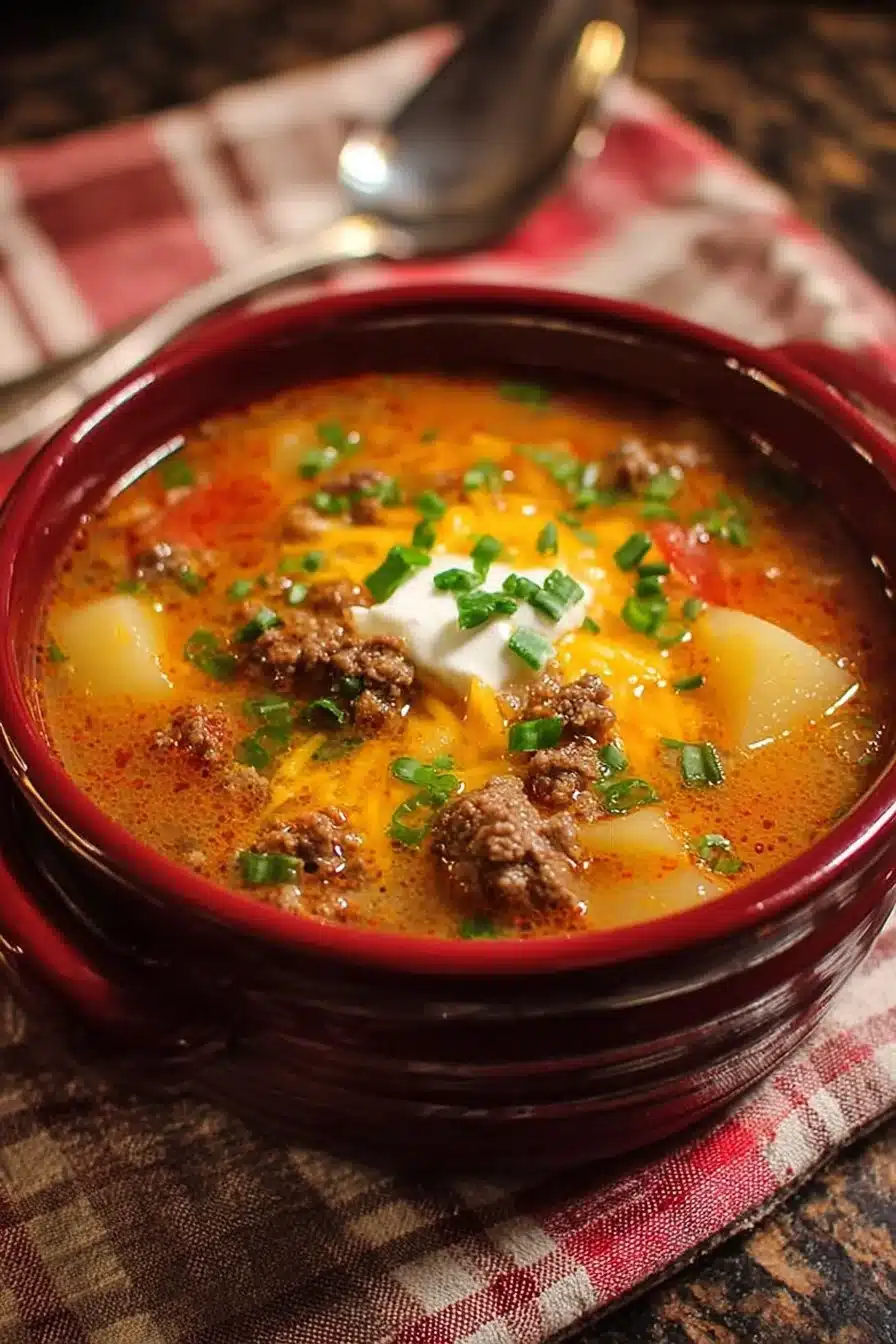 Cheesy Beef and Potato Soup is creamy, hearty, and packed with flavor. Perfect for family dinners or cozy gatherings, this one-pot dish is comforting and satisfying.