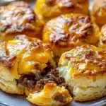 Warm and cozy Cheesy Beef Biscuit Bombs filled with savory ground beef and gooey cheese, perfect for family nights.