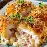 In a small bowl, combine 1 ½ cups of Panko breadcrumbs with 4 tablespoons of softened butter. Mix until the breadcrumbs are lightly coated, then sprinkle this crispy mixture evenly over the casserole. This is what will give you a glorious, crunchy topping to contrast the creamy filling.