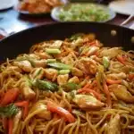 A comforting Chicken Lo Mein recipe that’s perfect for family gatherings, featuring tender chicken, crisp vegetables, and savory noodles.