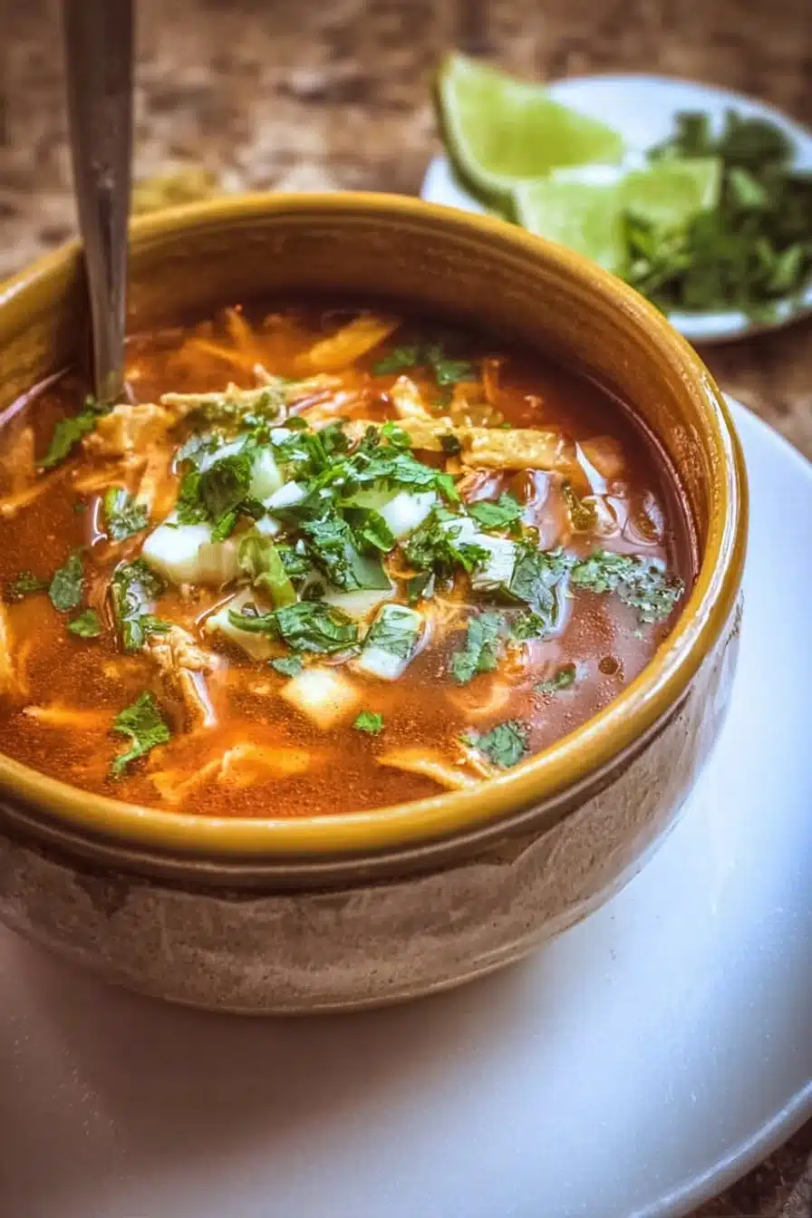 - Serve hot, topped with tortilla strips, fresh cilantro, and lime wedges. Enjoy! 🌿🍋