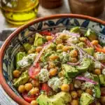 Chickpea Feta Avocado Salad with fresh ingredients and vibrant colors