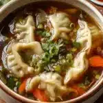 Serve Comforting Potsticker Soup in warm bowls. You can garnish it with extra green onions or a sprinkle of sesame seeds for added flavor. Enjoy it with chopsticks for the potstickers and a spoon for the soup!