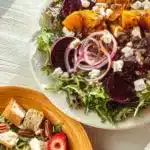 - Autumn Harvest Salad: Combine mixed greens with roasted sweet potatoes, quinoa, dried cranberries, and feta cheese, topped with a maple vinaigrette.