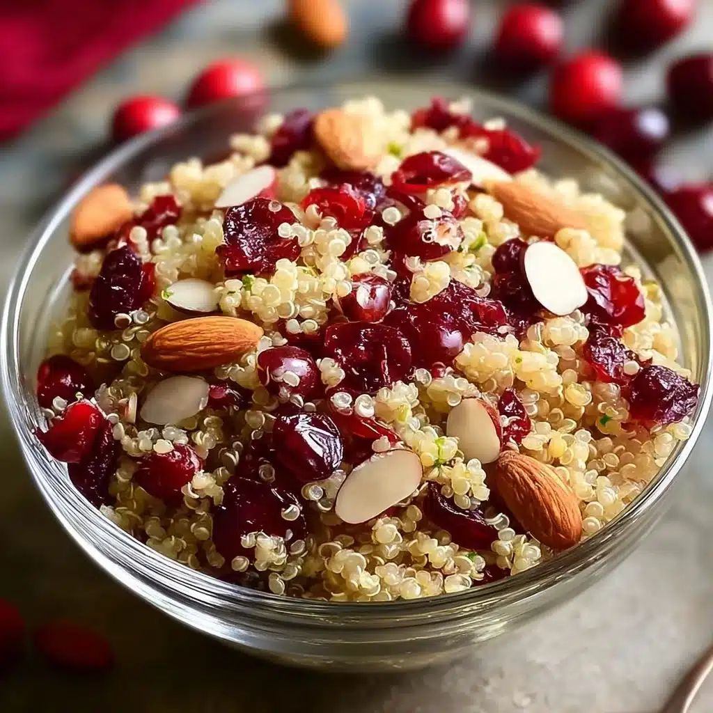 This salad is not only tasty but also healthy. Quinoa is a great source of plant-based protein and fiber. The combination of cranberries and almonds adds a perfect balance of sweetness and crunch. It’s a great side dish or a filling main course. Plus, with simple ingredients, anyone can whip it up in no time. Enjoy this beautiful dish as a nutritious meal or a delightful addition to any gathering!