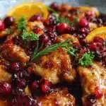 A delightful dish featuring juicy chicken, vibrant cranberries, and sweet orange juice, perfect for family gatherings and festive occasions.