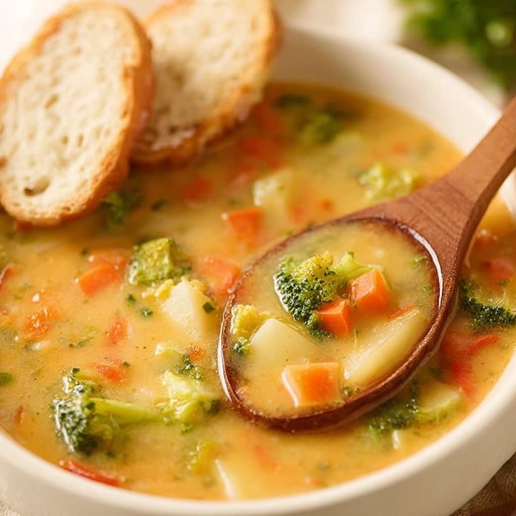 A delightful blend of vibrant veggies in a creamy, cheesy soup that’s perfect for chilly days.