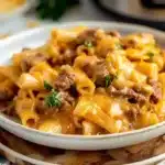 A comforting crockpot dish featuring creamy cheddar cheese, savory beef, and tender pasta, perfect for busy weeknights.