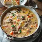 Keywords: cheeseburger soup, creamy soup, comfort food, family dinner, hearty soup