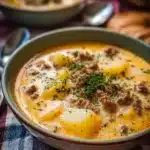A creamy and hearty soup packed with ground beef, tender potatoes, and cheesy goodness, perfect for chilly nights.