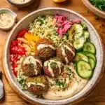 This falafel bowl, paired with creamy hummus and a silky tahini dressing, is a colorful celebration of fresh veggies and wholesome ingredients. It’s the kind of dish that seems fancy yet is so simple to make, perfect for busy weeknights or a cozy weekend meal. You’ll love how easy it is to prepare, and how it brings joy to the dining experience, transforming any ordinary evening into something magical.