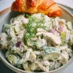 A refreshing and flavorful chicken salad combining tender chicken with zesty dill pickles, creamy dressing, and fresh herbs.