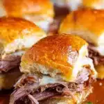 Make sure not to overload with beef broth while serving—it’s meant for dipping! You can also bake the sliders until the tops are crispy to help them retain their shape.