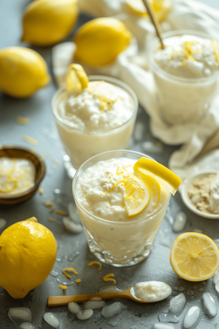 A velvety, citrus-soaked frozen treat that balances zesty lemon juice with the cool thickness of custard or yogurt. Perfect for summer or as a dessert parfait, this modern twist on traditional lemonade is a creamy, no-alcohol refreshment with customizable flavor variations.