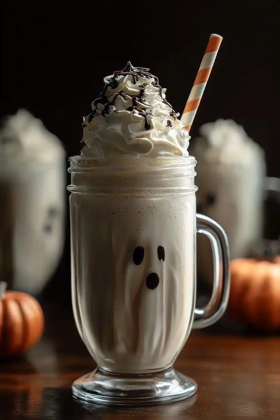 Ghostly Vanilla Milkshake is a spooky yet creamy treat made with vanilla ice cream, milk, and a ghostly touch of whipped cream. Quick, easy, and perfect for Halloween parties or a fun snack!