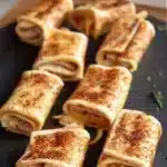 Heat a skillet over medium to medium-low heat and melt your butter in the pan. Once it’s shimmering and fragrant, carefully add your roll-ups. Cook for about 5 to 8 minutes, turning them gently with tongs every couple of minutes for an even golden-brown finish. The aroma will be irresistible! When they’re crisp and the cheese is melted, remove them from the pan, cut them in half if you wish, and get ready to indulge!