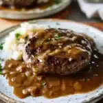 Keywords: hamburger steak, brown gravy, comfort food, family dinner, easy recipe