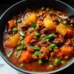 Hamburger Stew is a cozy, budget-friendly, and hearty one-pot meal. With ground beef, vegetables, and rich broth, it’s the perfect family dinner for busy nights or chilly evenings.