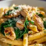 This delicious pasta dish is not only packed with flavor but also comes together quickly, making it a breeze to whip up after a long day! The combination of tender chicken, creamy sauce, and the nutty brightness of whole wheat pasta creates a satisfying meal that feels indulgent without the guilt. Plus, the vibrant baby spinach adds a pop of color and nutrition, making it a standout on your dinner table. Whether you’re cooking for a family gathering or a quiet evening at home, this recipe strikes that perfect balance between health and comfort.