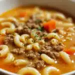 Hearty Hamburger Soup with Macaroni is a comforting, one-pot meal packed with beef, veggies, and pasta. Perfect for chilly days, family dinners, or meal prep nights!