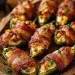 Deliciously creamy jalapeño poppers that combine spicy jalapeños, rich cheese filling, and crispy bacon.