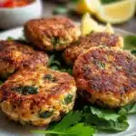 Now it’s time to form the patties! Scoop out roughly 1/4 cup of the mixture and shape it into approximately 8 patties, about ½ inch thick. Heat the remaining olive oil in the skillet over medium heat. Once hot, add the patties carefully, ensuring they’re not overcrowded. Cook them for about 5-6 minutes on each side until golden brown and cooked through. Remove from the skillet and let them drain on paper towels, soaking up any excess oil before serving.