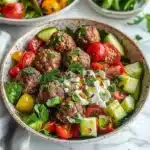 Delicious Mediterranean meatball bowl with fresh ingredients and herbs