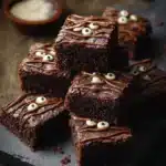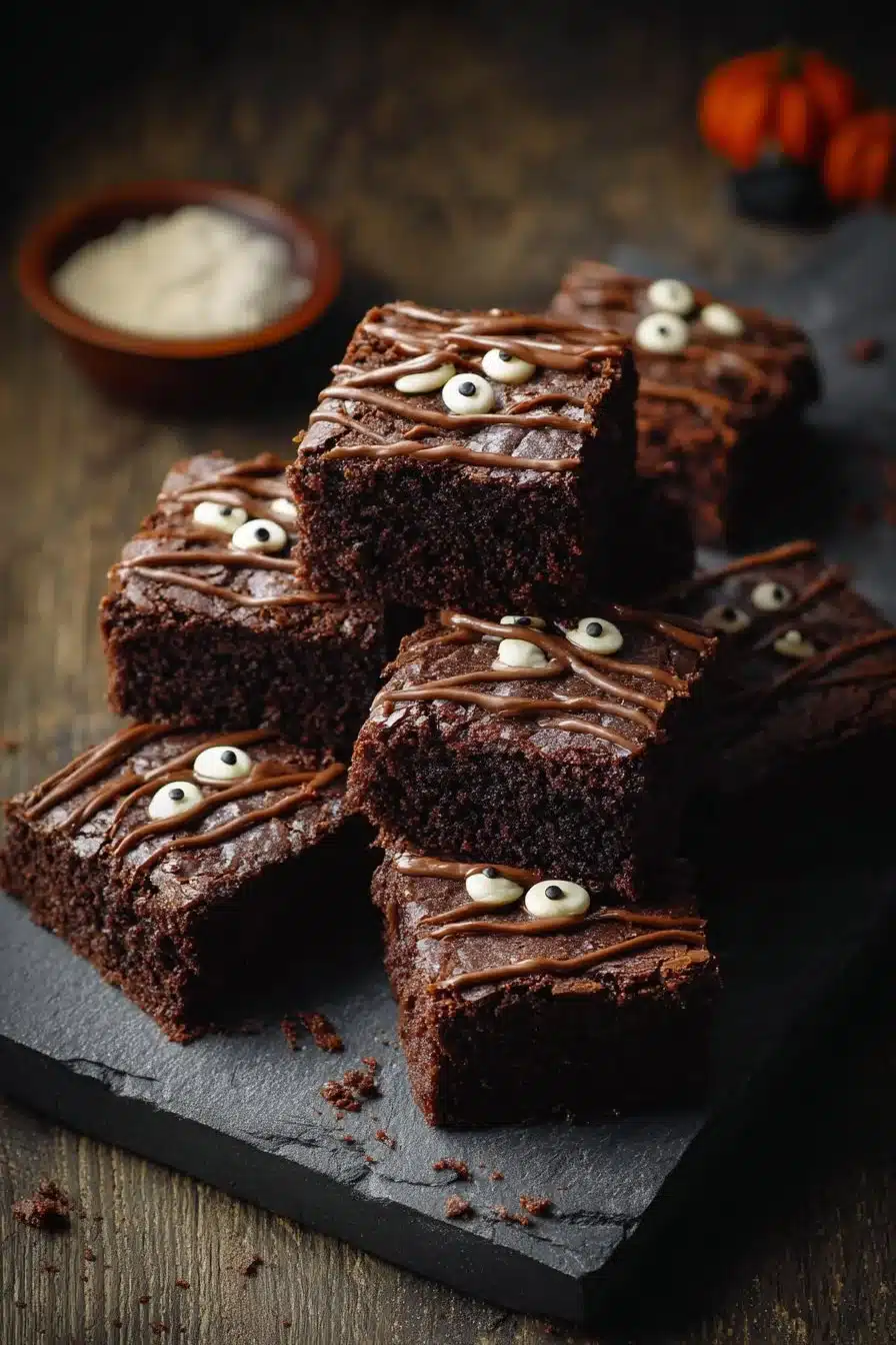 Mummy Brownies are a spooky, fudgy Halloween treat! Topped with melted white chocolate mummy wraps and candy eyes, these brownies are easy to make and perfect for festive gatherings.