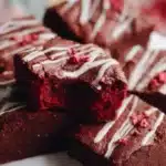 Rich, fudgy red velvet brownies infused with chocolate and topped with white chocolate; a delightful treat for any occasion.