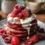 This red velvet pancake recipe offers an easy yet luxurious twist to your regular brunch routine. The delicate cocoa flavor combined with the enchanting color instantly elevates your breakfast experience, making it perfect for special occasions or just a fun family morning. They’re fluffy, delicious, and paired with a creamy glaze that takes them over the top! Plus, you can whip these up in no time—so say goodbye to the stress of complex mornings in the kitchen.