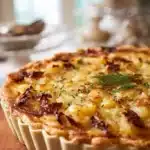 A warm and comforting potato pie made with layers of tender potatoes, onions, and melted cheese, perfect for cozy evenings.