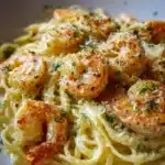 Serve your Creamy Garlic Shrimp Pasta with a simple side salad dressed in olive oil and lemon for a light contrast. Crusty bread is also a must—perfect for scooping up any leftover cheesy goodness. For a special touch, offer a glass of sparkling water with lemon slices or a refreshing non-alcoholic white grape juice to complement the dish’s flavors.