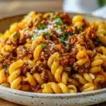 A comforting and hearty dish that combines the beloved flavors of Sloppy Joe with pasta, perfect for cozy evenings around the table.
