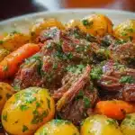 It’s one of those evenings when the crisp air outside hints at the coming chill of fall, and all I crave is the warmth of a comforting meal waiting for me at home. The slow cooker is humming softly in the background, filling the kitchen with the irresistible aroma of savory garlic and rich, buttery goodness. There’s something so cozy about knowing that tender beef and golden baby potatoes are slowly mingling together, creating not just a meal, but a reason for everyone to gather around the table.