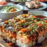 Spicy Salmon Sushi Bake delivers everything you crave from sushi without the rolling or precision. The warm rice, creamy salmon mixture, and gentle heat from Sriracha come together in a way that feels both familiar and exciting.