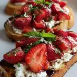 Strawberry Ricotta Bruschetta is a symphony of flavors and textures. The crunchy, toasted bread serves as the perfect base for the creamy, honey-infused ricotta, while the fresh strawberries add a vibrant burst of sweetness. The subtle hint of mint elevates this dish into something special. It’s one of those recipes that makes you feel good about using simple, fresh ingredients to create something beautiful.