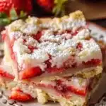 It’s a warm afternoon, and the air is filled with the sweet scent of fresh strawberries, lovingly piled on the counter from the local farmers’ market. The sun is casting a golden hue through the kitchen window, illuminating the joyful chaos of mixing bowls and measuring cups. I can hear laughter as my kids dart in and out, their fingers sticky with strawberry juice, ready to help create something delightful. These strawberry shortcake bars are perfect for sharing with family — they’re simple but so satisfying, bringing a cozy touch to any gathering or a sunny day treat.