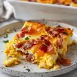 A delightful Gluten-Free Bacon and Egg Casserole filled with fluffy eggs, crispy turkey bacon, and sharp cheddar cheese, perfect for family gatherings and make-ahead breakfasts.